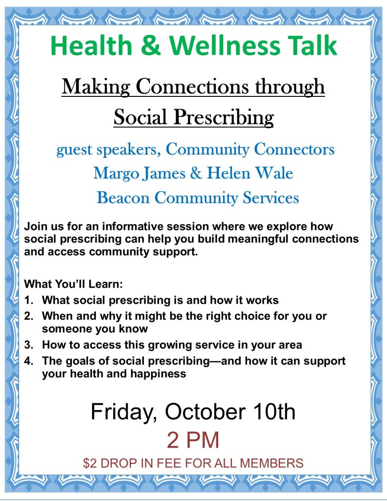 Health & Wellness Talk Friday Oct 10th Making Connections through Social Prescribing