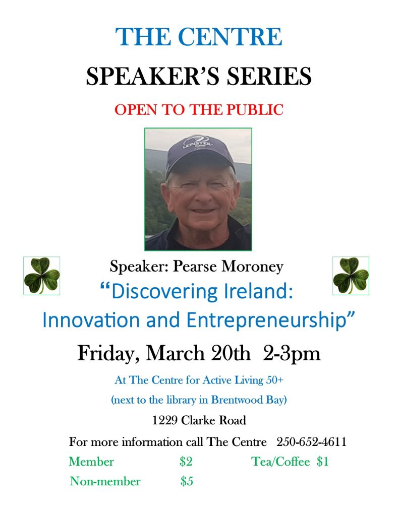 Speaker Series “Discovering Ireland” Fri. March 20, 2-3pm
